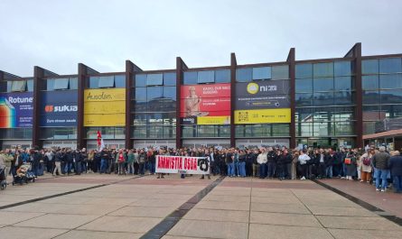 2023/05/04 Presoen aldeko pankarta jartzen saiatzeagatik 750 euroko isun bana ezarri diete eta epaitegira joan beharko dira bi pertsona Donostian.